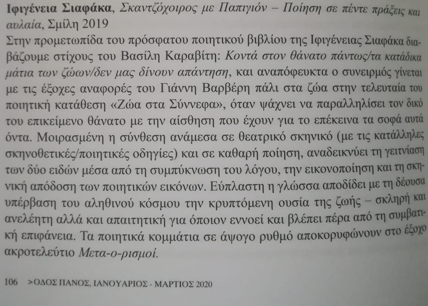 Published 28/12/2019 at 1440 × 1028 in Ιφιγένεια Σιαφάκα, Σκαντζόχοιρος με παπιγιόν: κριτική της Δ. Δημητριάδου, Οδός Πανός, τχ 185