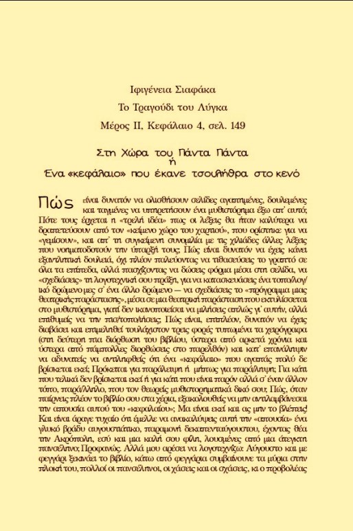 Tags: Eλληνική πεζογραφία, Greece, Ιφιγένεια Σιαφάκα, Το τραγούδι του λύγκα