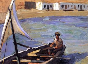 Καθώς άγγιζε η πλώρη την αμμουδιά, πήδησε στα ρηχά ζεστά νερά και βγήκε γοργά. Κάποιος πέταξε από μέσα τον μικρό του γιούκο, δεμένον γερά στην κορφή. Τον έπιασε στον αέρα και γύρισε για την ανηφοριά. Είχε μείνει μια βδομάδα αξούριστος κι έζεχνε ψαρίλα. Κατάσαρκα μέσα από το αντερί του αισθανόταν πάντα το σφραγισμένο γράμμα. Όμως, μ’ όλη τη βιασύνη, ούτε που περνούσε από το νου του να παρουσιαστεί σ’ αυτά τα χάλια.