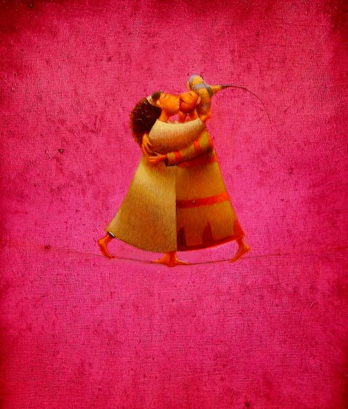 Απ΄ τις ραγισματιες του τοιχου σε βλεπω μεσα στο μπουντρουμι σου να ξεφυσας έναν τυφωνα θυμο Ηρωας υπο ορους Υπο αιρεση Δογματικος, Ισχυρογνωμων, Νομοθετης. Ολες οι αξιες σου αποστραμμενες απ΄τον Κοσμο. Ολη σου η ψυχη μια μηχανη ενδοσκοπησης. Γρηγορα κλεινω τις μικρες ραγισματιες Με σβωλους απ΄ τη λασπη μου Γρηγορα και πιο γρηγορα. Και μια ματια σου αν με πετυχαινε Κατακαρδα Θα με αποσβολωνε Θα με εκανε κομματι του εντος σου Και μια ματια θα με φυλακιζε στο απανθρωπο των αυστηρων σου ιδεων. Στο σκληρο παραδεισενιο κηπο Οπου τα λαθη μενουν ασυγχωρητα